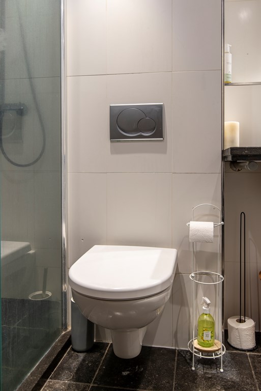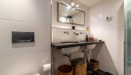 Niveau 4: Dit niveau heeft een slaapkamer aan de voorkant van de woning. Ook vinden we hier de badkamer. Deze badkamer is uitgevoerd met een dubbele wastafel, een inloopdouche, een toilet en een lavet.