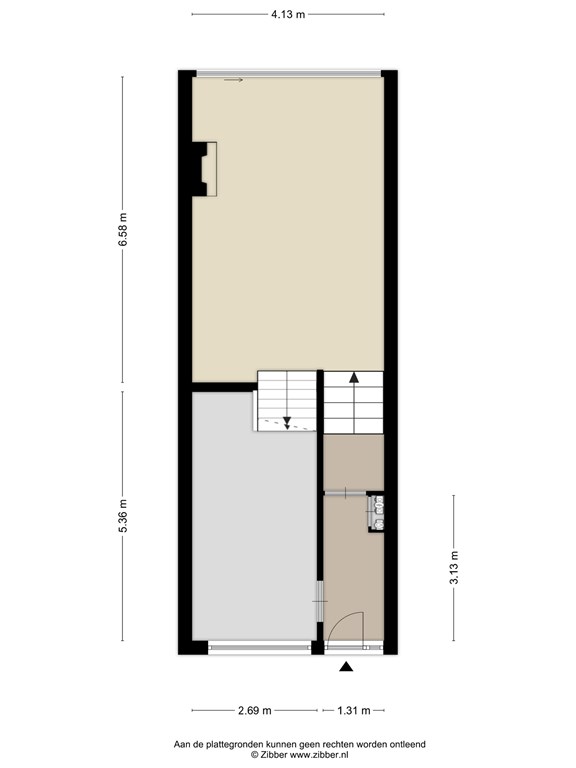 Begane grond: Via de voortuin met privé parkeerplaats komen we aan bij de voordeur. Nadat deze is geopend staan we als eerste in de hal. Deze hal heeft een deur naar de meterkast en een kleine trap naar het eerste niveau. Ook geeft de hal toegang tot de inpandige garage. Deze garage heeft een kanteldeur met een loopdeur. In de garage is er een doorgang naar het souterrain. Er zijn bewoners die deze ruimte hebben verbouwd tot extra (slaap/werk)kamer en deze ruimte (al dan niet samen met de garage) bij de woning hebben getrokken.