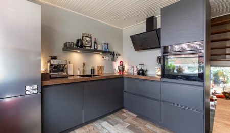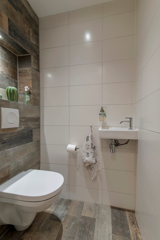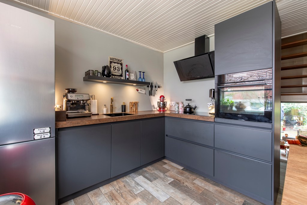 Niveau 2: Op dit, via een open trap van 7 treden te bereiken niveau, vinden we allereerst het in 2020 gemoderniseerde toilet wat via een tussenhalletje toegankelijk is. De woonkeuken heeft een in een hoek opgestelde keukeninrichting die is voorzien van een inductiekookplaat, een afzuigkap, een AEG stoomoven, een AEG vaatwasser en een Quooker. De bijbehorende maar losse koel-/vriescombinatie zal eveneens achterblijven. Vanuit de woonkeuken is er een leuk uitzicht over de omgeving waar altijd wat te zien en te beleven is. Met recht een prettige plek dus om veel te vertoeven.