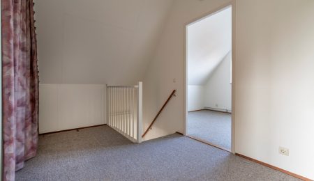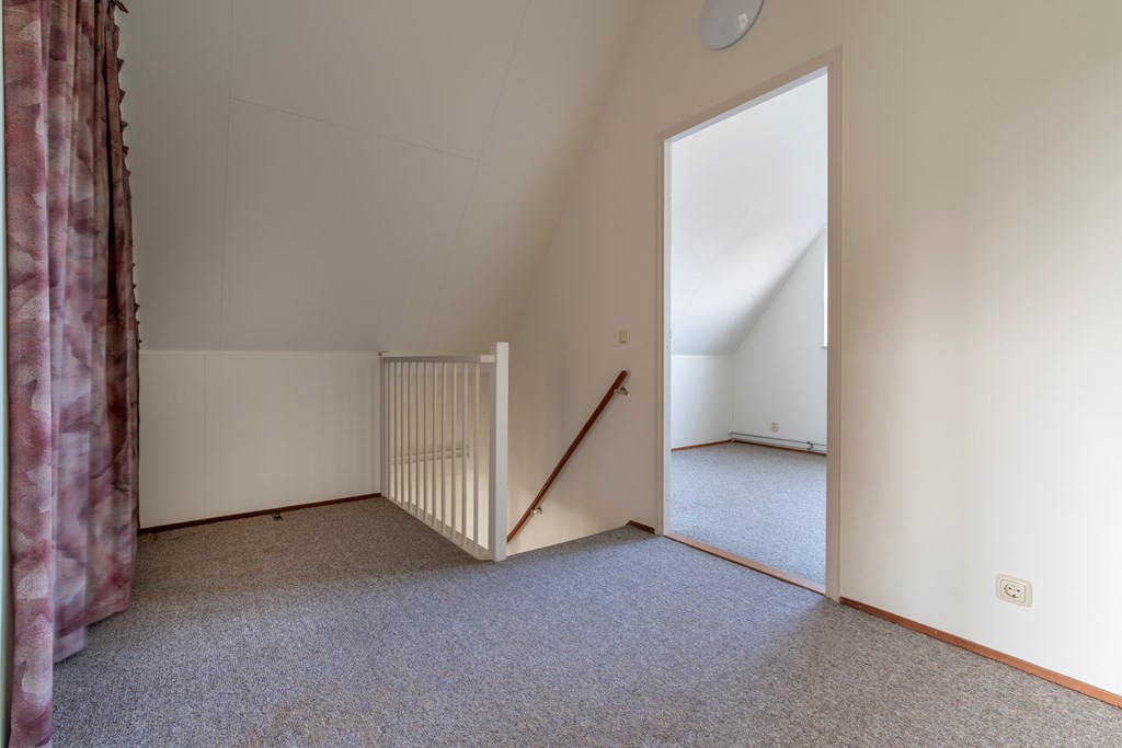2e Verdieping: We benoemden het al, de overloop op deze verdieping is zo groot dat deze makkelijk gebruikt kan worden als thuiswerkplek of iets dergelijks. Ook de CV- en de MV is hier opgesteld. Verder is er een immense slaapkamer aan de voorkant en een iets kleinere slaapkamer aan de achterkant van het huis. Maar ook deze kleinere slaapkamer is uitstekend te gebruiken als kinderkamer.