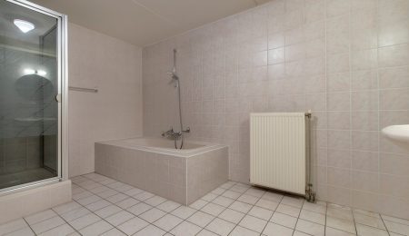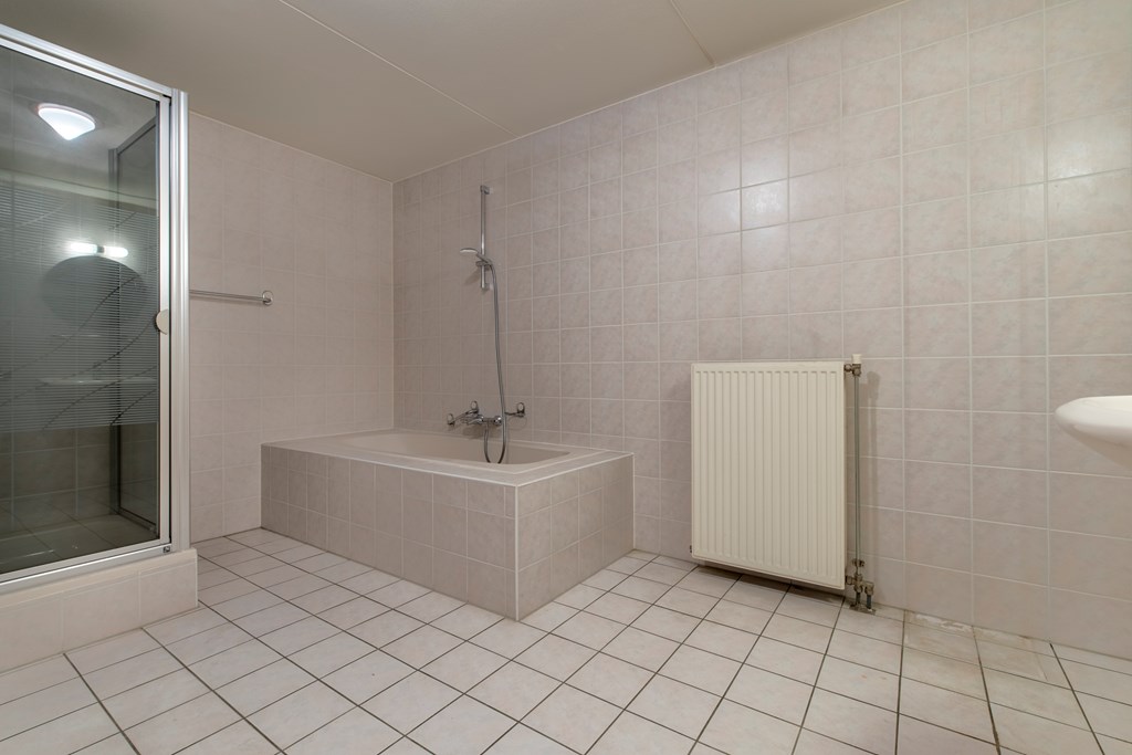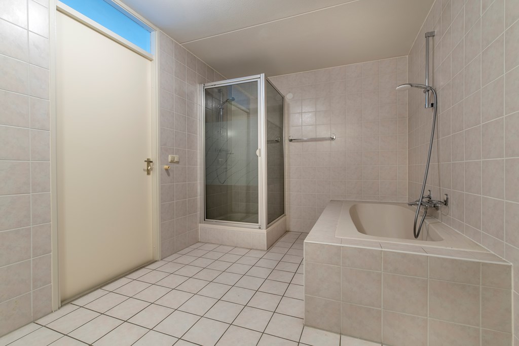 1e Verdieping: De overloop geeft toegang tot de pandbrede slaapkamer aan de voorzijde van de woning. In deze slaapkamer ruimte in overvloed voor het plaatsen van een (vaste) kastenwand of iets dergelijks. Aan de achterzijde bevindt zich nog een slaapkamer. Voorheen waren dit twee slaapkamers. Deze slaapkamer geeft toegang tot het dakterras. Ideaal om bijvoorbeeld de was te drogen. Door deze samenvoeging is ook de badkamer vergroot waardoor deze beschikt over een ligbad, een douchecabine, een toilet en een wastafel. En een zee aan ruimte niet te vergeten.