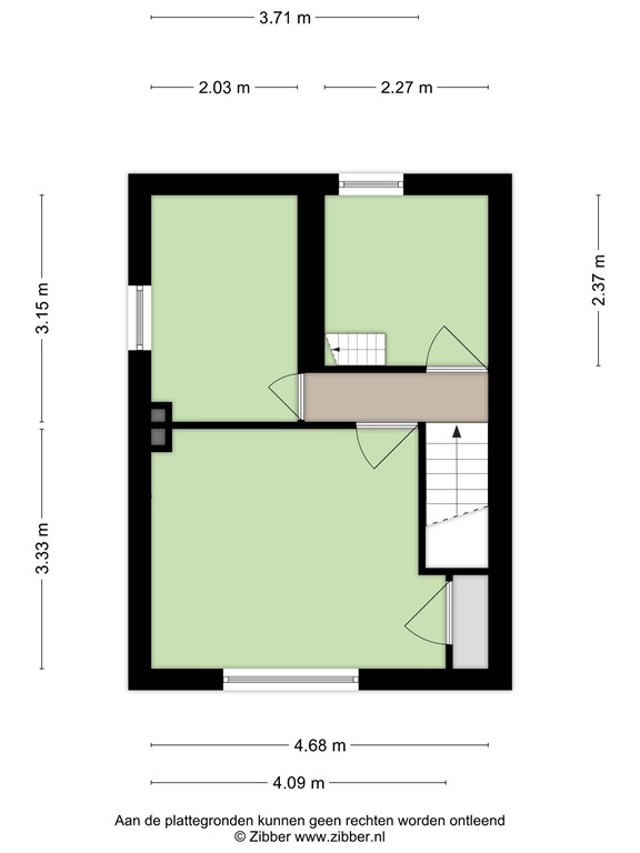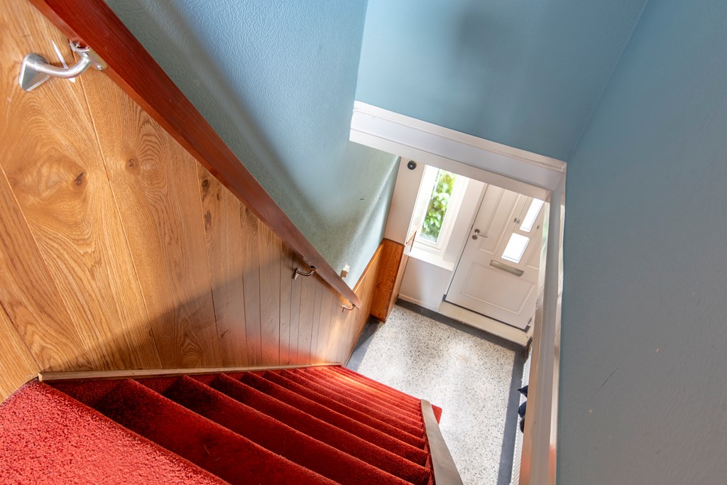 1e Verdieping: Vanaf de overloop zijn te bereiken een slaapkamer aan de voorzijde van het huis en twee slaapkamers aan de achterzijde van het huis. Vanuit één van deze slaapkamers is er een trap naar de zolderverdieping. Deze zolderverdieping is niet ingedeeld en heeft een dakvenster.