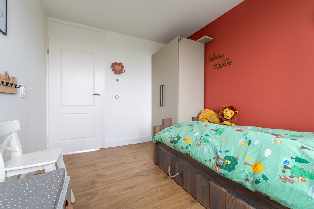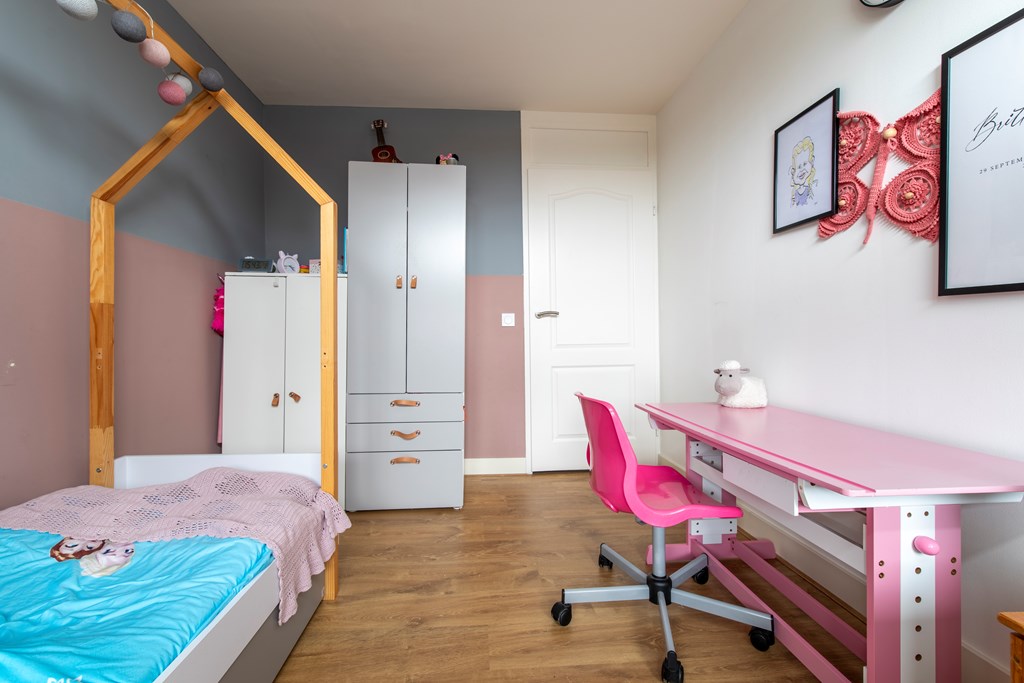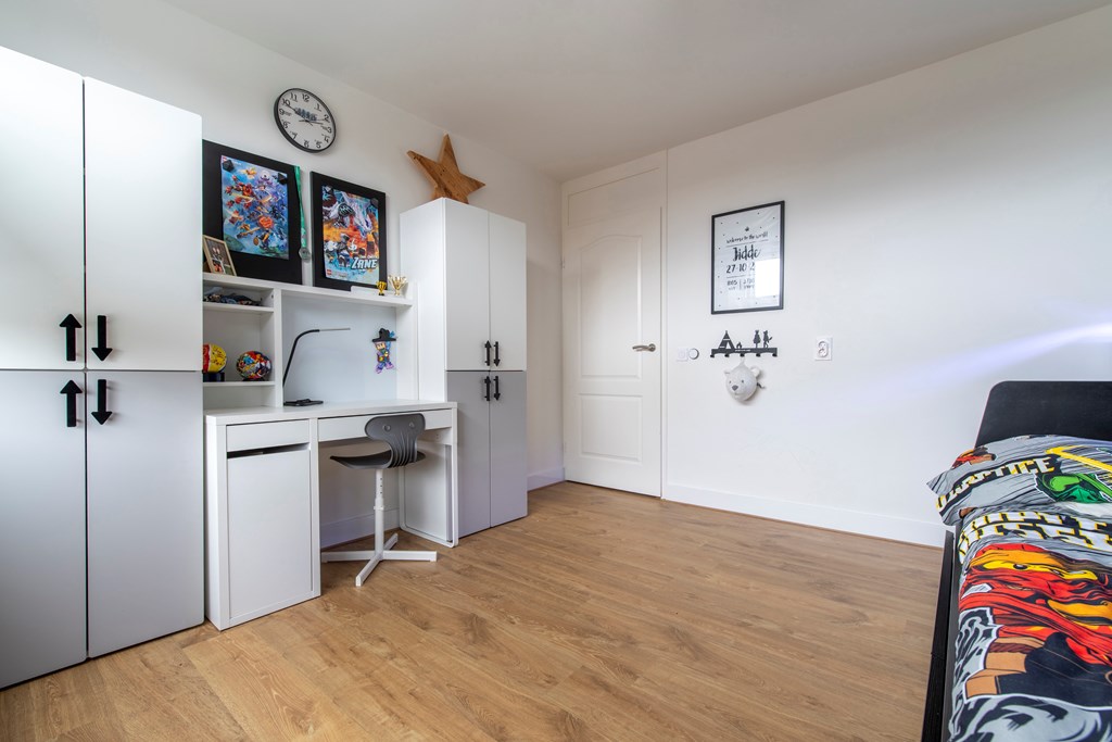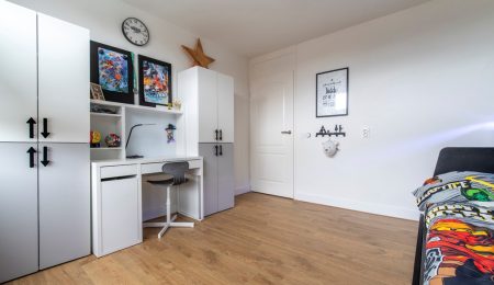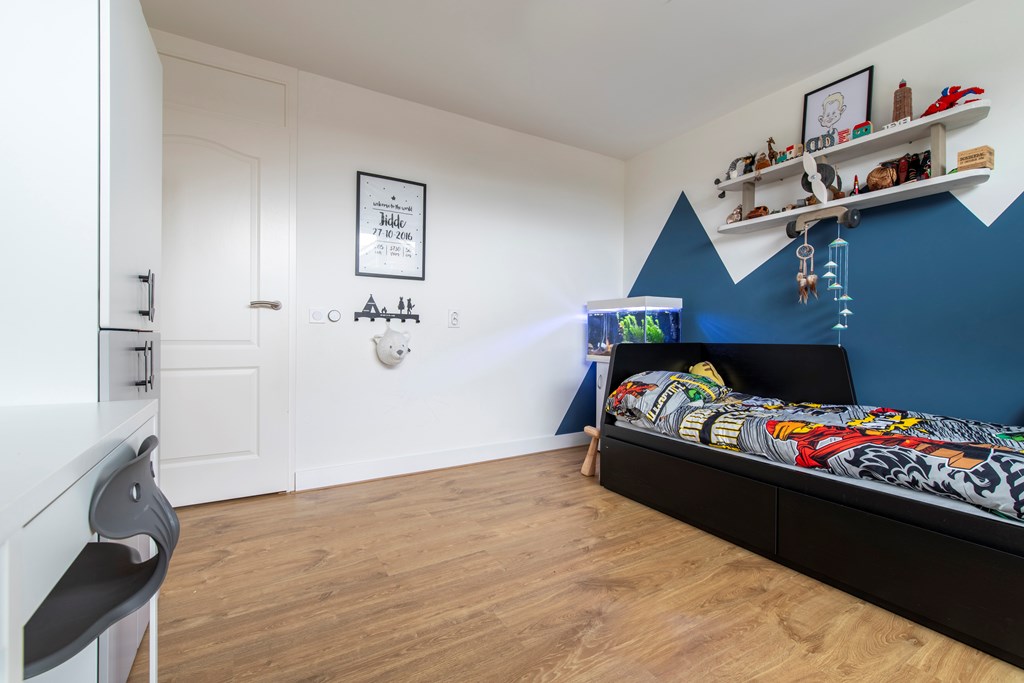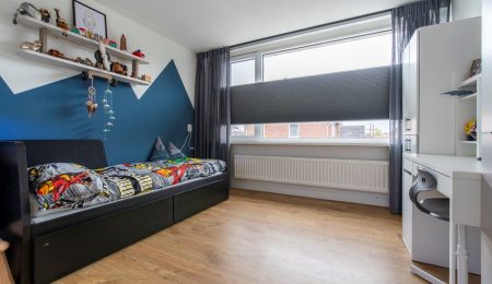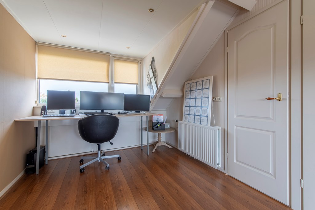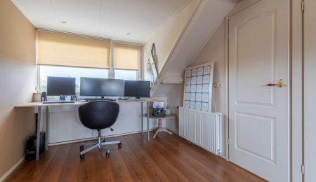 2e Verdieping: De voorzolder profiteert al van de dakkapel aan de voorkant. Hierdoor leent de voorzolder zich perfect als hoekje om bijvoorbeeld thuis vandaan te werken. De slaapkamer is, onder andere vanwege de twee dakkapellen, zo groot dat deze uitermate geschikt is om als hoofdslaapkamer te worden gebruikt. In een kastenwand is de CV-ketel en de mechanische ventilatie van de badkamer weggewerkt.