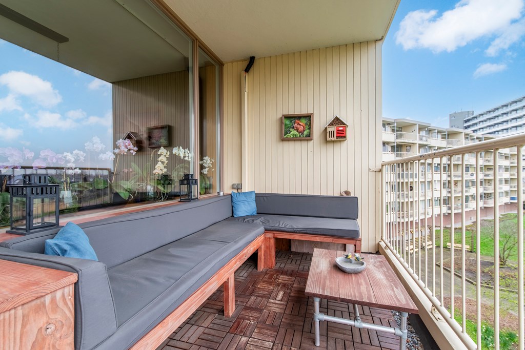 Dit, op de 3e etage gelegen, 3-kamer appartement heeft van zichzelf al een praktische en efficiënte indeling met een ruim balkon. Echter, de huidige bewoners hebben de indeling nog meer verbeterd door deze aan te passen en hierdoor de badkamer te vergrootten. Daarbij is het balkon met 10 m2 niet alleen ruim, vanaf het balkon is er ook nog eens een aantrekkelijk, vrij uitzicht. En met een oriëntatie op het zuid-oosten zit je hier perfect.