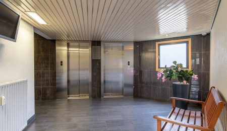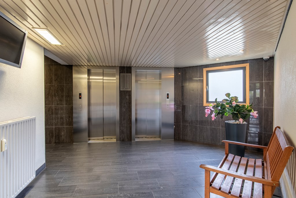 Begane grond: hier vinden we de afgesloten entree met videofooninstallatie, de brievenbussen, de dubbele liftinstallatie, het trappenhuis, de bergingen en gezamenlijke fietsenstalling. Op het parkeerterrein zijn er meerdere laadpalen.